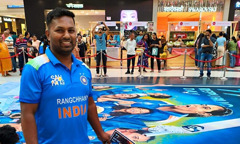 भारताच्या महिला क्रिकेट टीमची रांगोळी साकारणाऱ्या रांगोळीकार योगेश डाकी यांचा जागतिक विक्रम